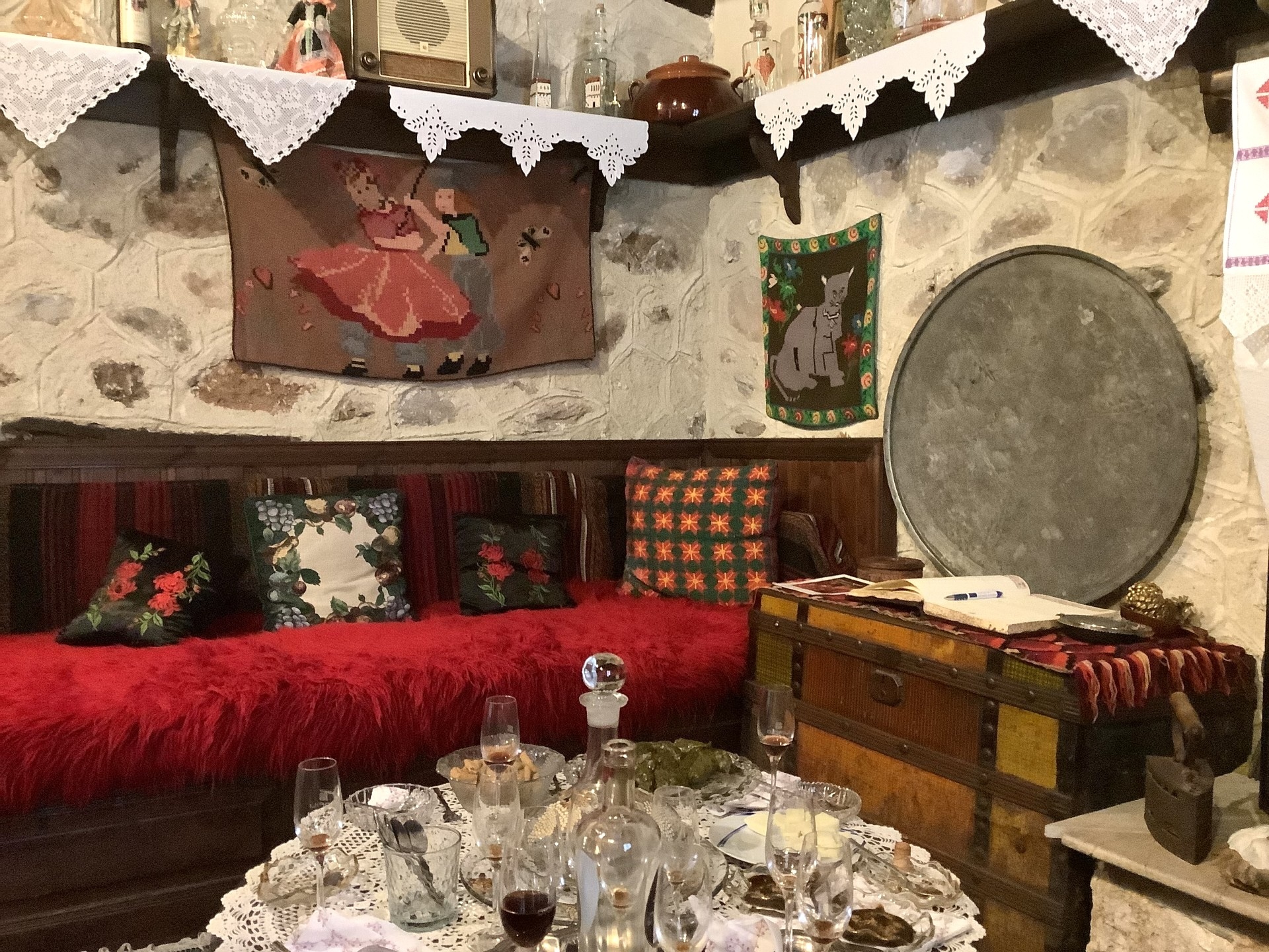Τι γυρεύω εδώ; Τα καλύτερα! Και τα βρίσκω ένα ένα. Ο περιηγητικός χάρτης που ακολουθώ με διακτινίζει random play, από σποτ σε σποτ, στα πλούτη και τις ομορφιές της ενδοχώρας της. Πίσω, όμως, στου Ναουμίδη, του εξπέρ στην πιπεριά και τις παραλλαγές της και στα φίνα πιάτα που μας τράταρε με χυλοπίτες αξεπέραστες, που εντός τους οργιάζουν τα μοσχαρίσια μάγουλα, ατακαριστά με τα φασόλια και τα λουκάνικα, ακόμα ένα εμβληματικό πιάτο της περιοχής. Και ψωμί φρεσκοψημένο χειροποίητο και τουρσιά του θανατά και άλλα γούστα διάφορα συνοδευμένα από μια θεσπέσια Μαλαγουζιά του Κτήματος Άλφα.