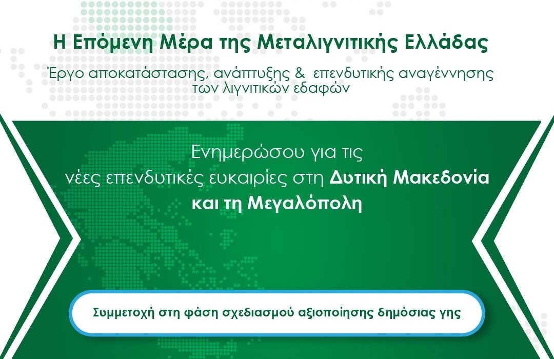 Η δράση αφορά την αξιοποίηση εκτάσεων στη Δυτική Μακεδονία και στη Μεγαλόπολη, με στόχο την προσέλκυση επενδύσεων που θα συμβάλουν στην αναπτυξιακή ανασυγκρότηση και την περιβαλλοντική μετάβαση των περιοχών αυτών.