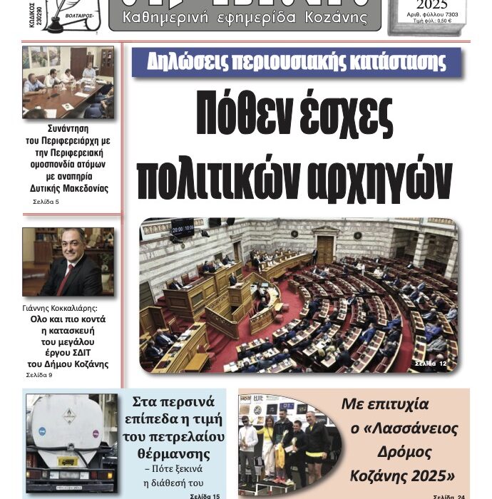 Αναλυτικός Σχολιασμός Πρωτοσέλιδου – “Πρωινή” Κοζάνης | 30 Σεπτεμβρίου 2025