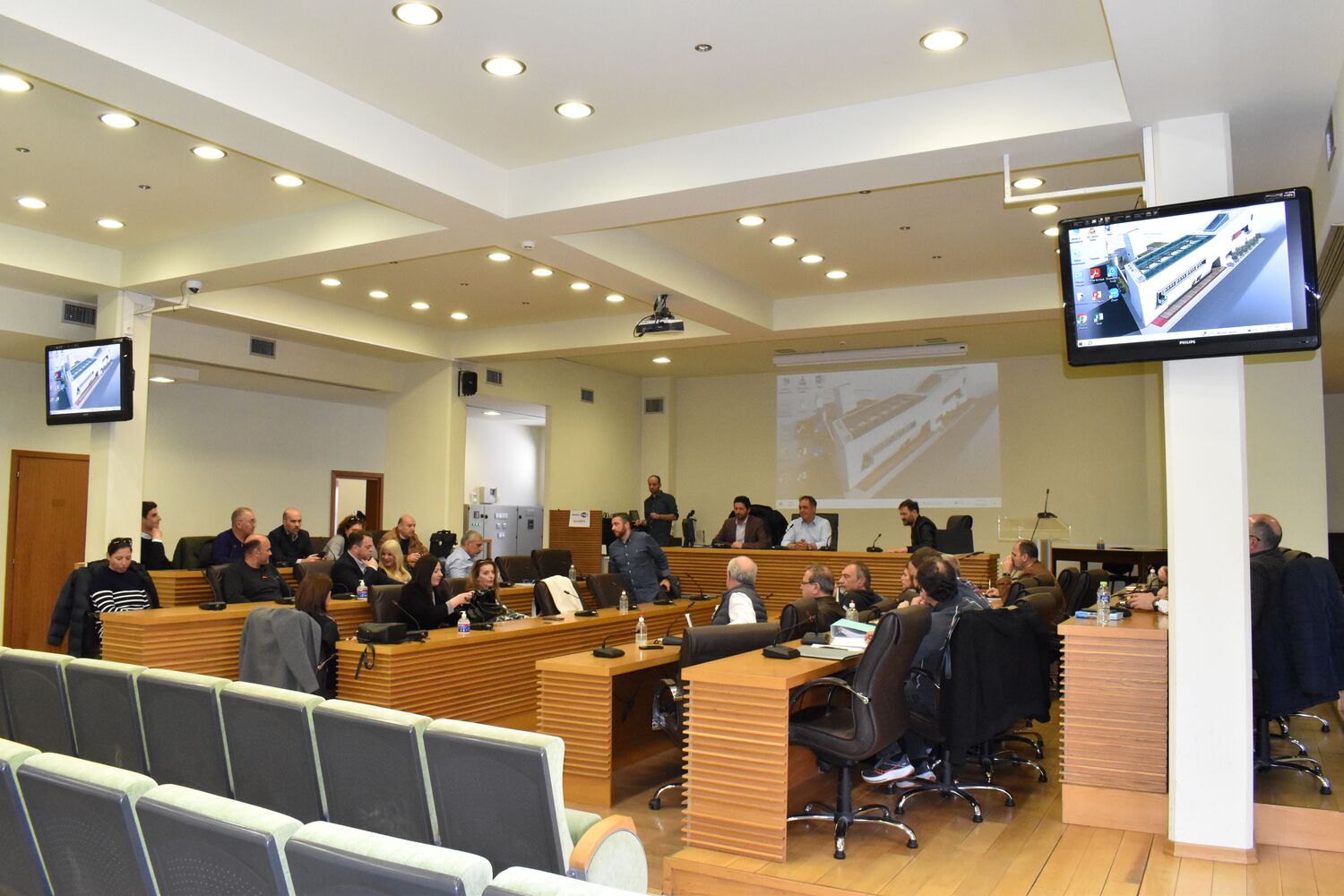 Συνάντηση με τους υποψήφιους αναδόχους του μεγάλου έργου Σύμπραξης Δημόσιου Ιδιωτικού Τομέα (ΣΔΙΤ) του Δήμου Κοζάνης, προϋπολογισμού 80 εκατομμυρίων ευρώ, είχε το μεσημέρι της Πέμπτης 28 Μαρτίου 2024 στην Αίθουσα Κοβεντάρειο, ο Δήμαρχος Κοζάνης Γιάννης Κοκκαλιάρης, συνοδευόμενος από τον Αντιδήμαρχο Τεχνικών Έργων Κώστα Βόμβα και υπηρεσιακά στελέχη της Διεύθυνσης Τεχνικών Υπηρεσιών.