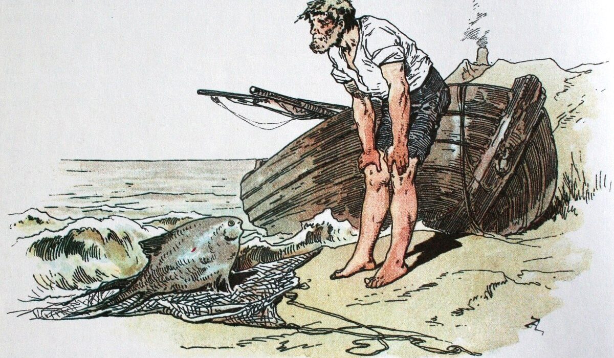 Στο γερμανικό παραμύθι «Ο ψαράς και η γυναίκα του», ένας γέρος ψαράς πιάνει μια μέρα ένα παράξενο ψάρι: μια γλώσσα που μιλάει. Αποδεικνύεται ότι μέσα στο ψάρι αυτό είναι φυλακισμένος ένας μαγεμένος πρίγκιπας και ότι μπορεί να εκπληρώσει οποιαδήποτε ευχή. Η γυναίκα του άνδρα, η Ilsebill, είναι ενθουσιασμένη και επιθυμεί όλο και πιο υπερβολικά πράγματα. Μετατρέπει την άθλια καλύβα τους σε κάστρο, αλλά αυτό δεν είναι αρκετό. Τελικά θέλει να γίνει Πάπας και, τέλος, Θεός. Αυτό εξοργίζει τα στοιχεία της φύσης. Η θάλασσα σκοτεινιάζει και η Ilsebill επιστρέφει ξανά στην αρχική της φτωχή κατάσταση. Το ηθικό δίδαγμα της ιστορίας; Μην επιθυμείς κάτι που δεν σου ανήκει.