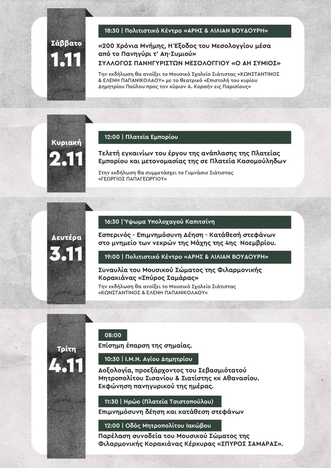 -12:00 Παρέλαση συνοδεία του Μουσικού Σώματος της Φιλαρμονικής Κορακιάνας Κέρκυρας «Σπύρος Σαμαράς».