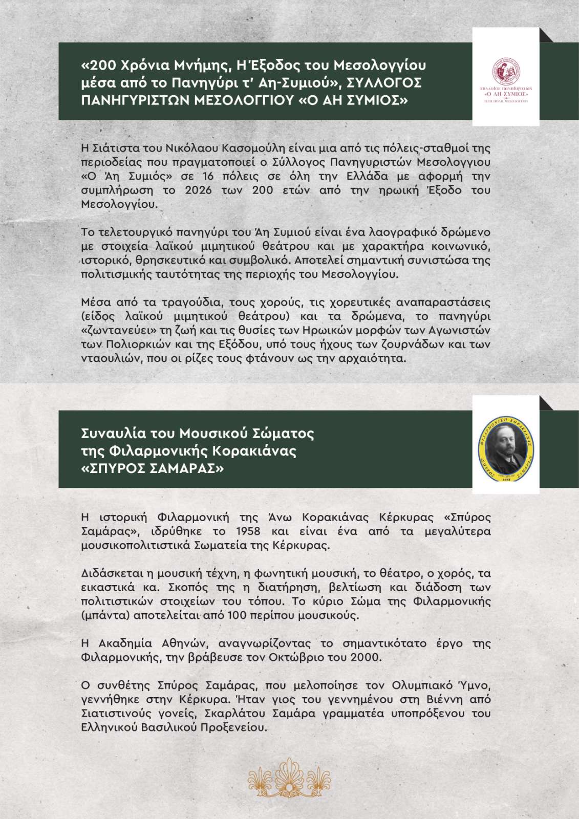 Παρουσίαση από τον Σύλλογο Πανηγυριστών Μεσολογγίου «Ο ΑΗ ΣΥΜΙΟΣ».