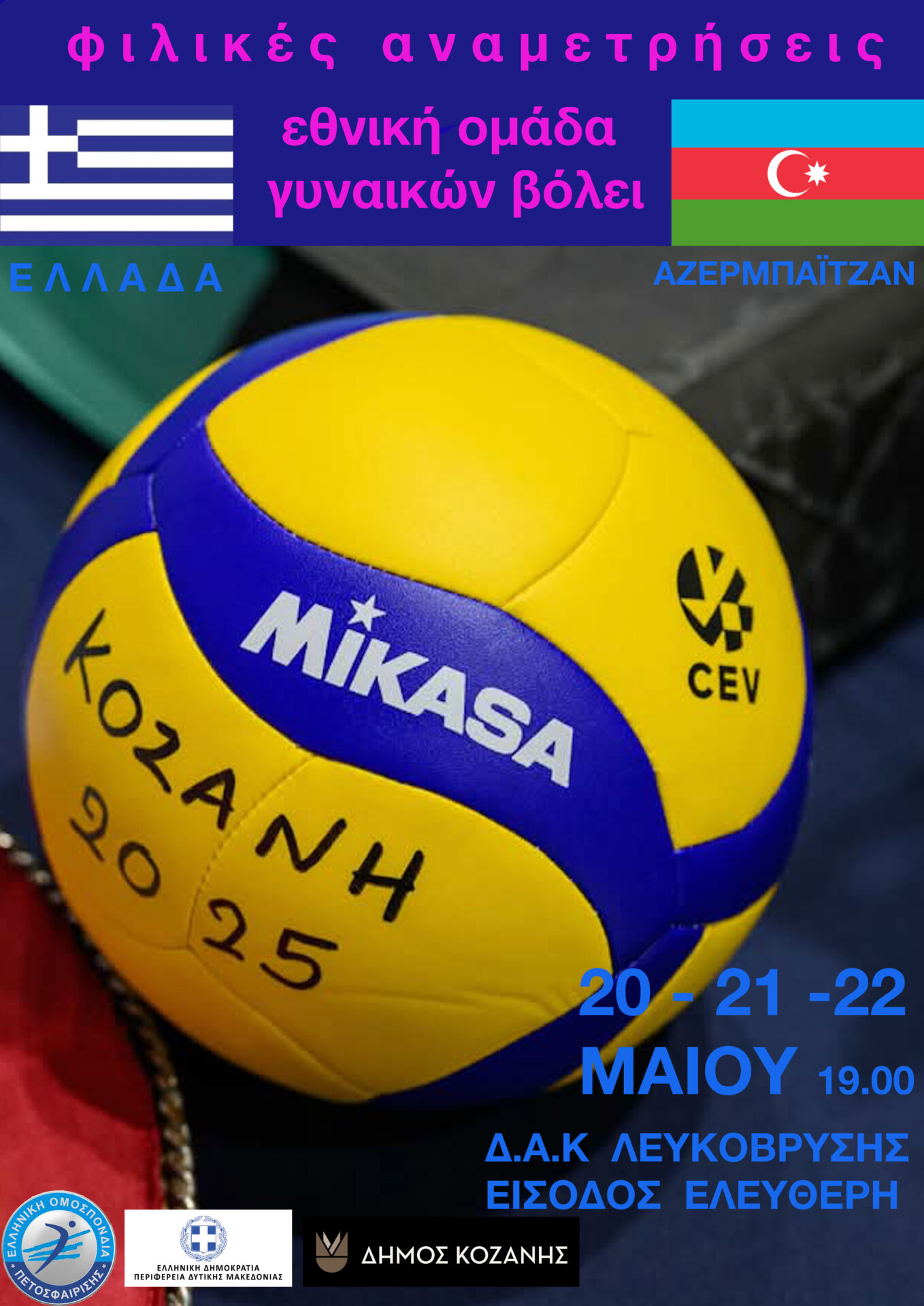 Δήμος Κοζάνης: Θα πλημμυρίσει από νιάτα το Κλειστό της Λευκόβρυσης στις 20, 21 και 22 Μαΐου 2025 για τα φιλικά προετοιμασίας της Εθνικής Βόλεϊ Γυναικών με το Αζερμπαϊτζάν
