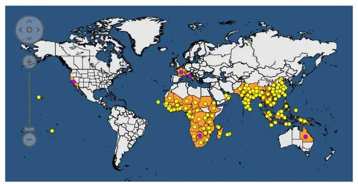 Εικόνα 1: Παγκόσμια διασπορά του επιβλαβούς οργανισμού Bactrocera dorsalis Bactocera zonata (πηγή: EPPO).