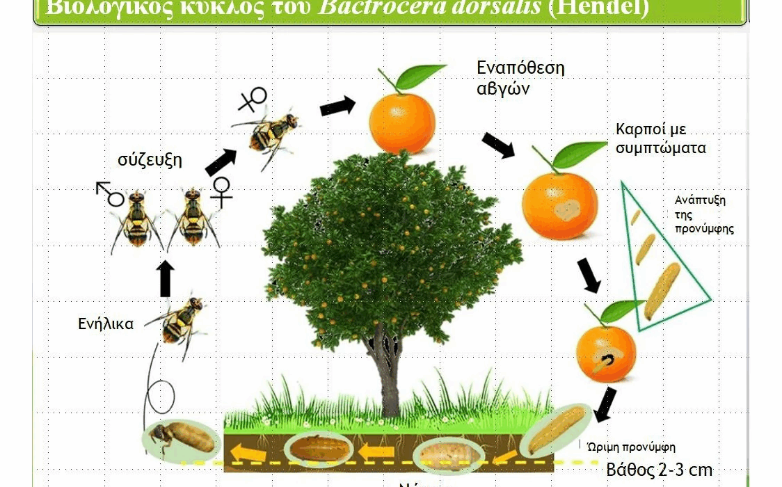 Εικόνα 2: Ο βιολογικός κύκλος του Bactrocera dorsalis και Bactrocera zonata