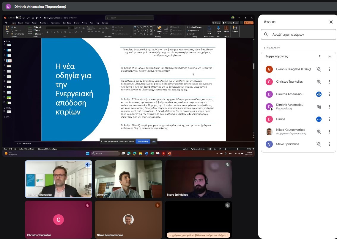 Ειδικοί σε θέματα ενεργειακής αποδοτικότητας, εξοικονόμησης και πολιτικής από το ΚΑΠΕ, το ΑΠΘ, το ΙΕCCP και το CluBE ανέλυσαν τις ευκαιρίες και προκλήσεις της ενεργειακής αποδοτικότητας σε ευρωπαϊκό επίπεδο, θέματα και δράσεις αντιμετώπισης της ενεργειακής φτώχειας, τον ρόλο των κλιματικών συμβολαίων των πόλεων, τον ρόλο των Υπηρεσιών Μιας Στάσης (One-Stop-Shops) στην προώθηση ενεργειακών αναβαθμίσεων σε τοπικό επίπεδο και καλές πρακτικές από αντίστοιχα έργα.