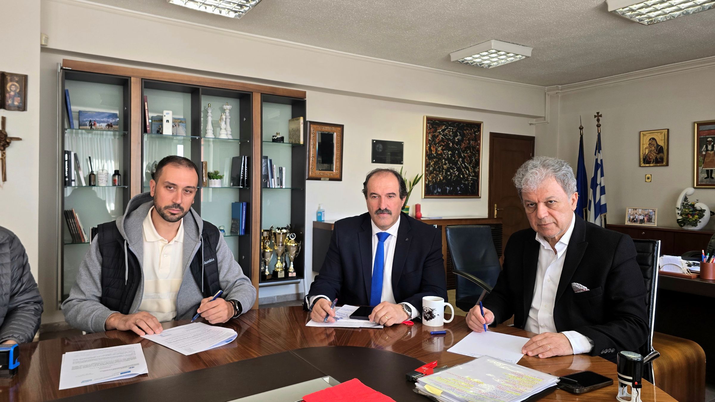 Σύμβαση ποσού 462.373,87 ευρώ με Φ.Π.Α. για την εκτέλεση του έργου «Ενεργειακή Αναβάθμιση του Κτιρίου Διοικητηρίου Περιφερειακής Ενότητας Φλώρινας» υπεγράφη την Πέμπτη 26 Μαρτίου 2026, στο γραφείο του Αντιπεριφερειάρχη Φλώρινας. Η σύμβαση υπογράφηκε μεταξύ του Περιφερειάρχη Δυτικής Μακεδονίας, Γιώργου Αμανατίδη, και του εκπροσώπου της αναδόχου εταιρείας «Χρήστος Τσιαούσης & Σία Ε.Ε. (ERGON D.C.)», παρουσία του Αντιπεριφερειάρχη Π.Ε. Φλώρινας, Αθανάσιου Τάσκα.