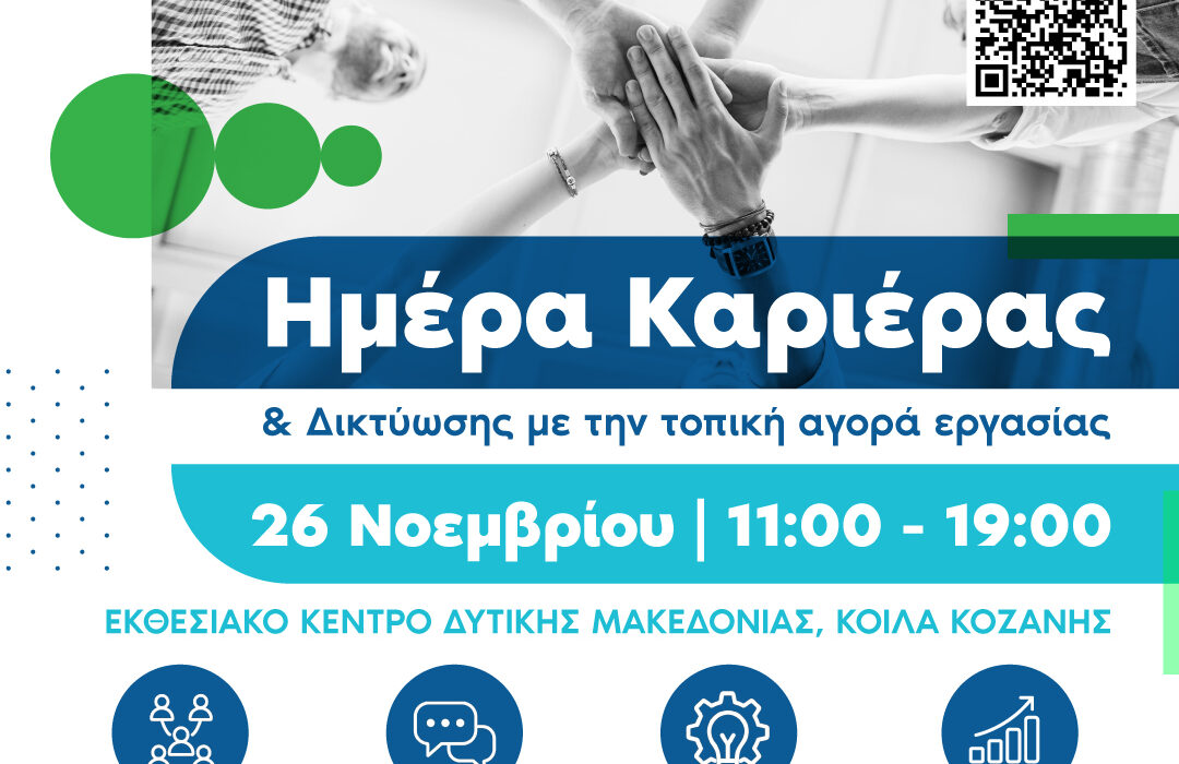 Η Ημέρα Καριέρας & Δικτύωσης στην Κοζάνη αποτελεί ετήσια δράση για την περιοχή με στόχο την ανάπτυξη συνεργειών και δικτύωσης μεταξύ επιχειρήσεων, φορέων και πολιτών, καθώς και την ενδυνάμωση του ανθρώπινου δυναμικού μέσα από την προώθηση της απασχόλησης και τη δημιουργία ευκαιριών επαγγελματικής εξέλιξης.