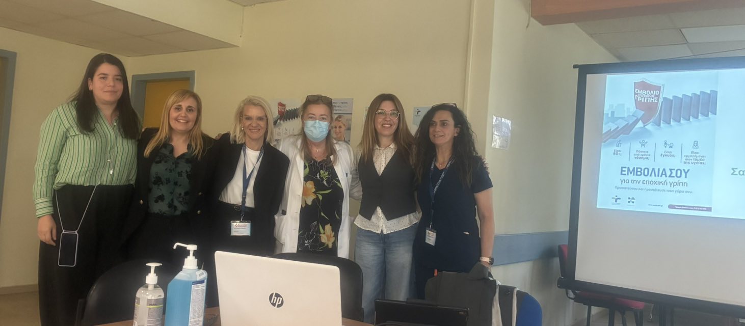 Η πρωτοβουλία αυτή εντάσσεται στο πλαίσιο του Υποέργου 5 «Πρόληψη και Έλεγχος Λοιμώξεων που Σχετίζονται με τη Φροντίδα Υγείας και Μικροβιακής Αντοχής» του ΕΟΔΥ. Κατά τη διάρκεια της ημερίδας, η ομάδα ιατρών του ΕΟΔΥ Βορείου Ελλάδας παρουσίασε ομιλία με επίκεντρο τη σημασία του αντιγριπικού εμβολιασμού των επαγγελματιών υγείας ενώ ακολούθησε εποικοδομητική συζήτηση με το προσωπικό του νοσοκομείου που παρευρέθηκε στην εκδήλωση, ανταποκρινόμενο θερμά στην πρόσκληση. Η αύξηση του ποσοστού εμβολιασμού μεταξύ των επαγγελματιών υγείας αποτελεί κρίσιμο βήμα για την αποτελεσματική αντιμετώπιση της εποχικής γρίπης καθώς ο αντιγριπικός εμβολιασμός παραμένει το αποτελεσματικότερο μέσο πρόληψης, προστατεύοντας τόσο τους ίδιους όσο και τους ασθενείς τους και τις οικογένειες τους.