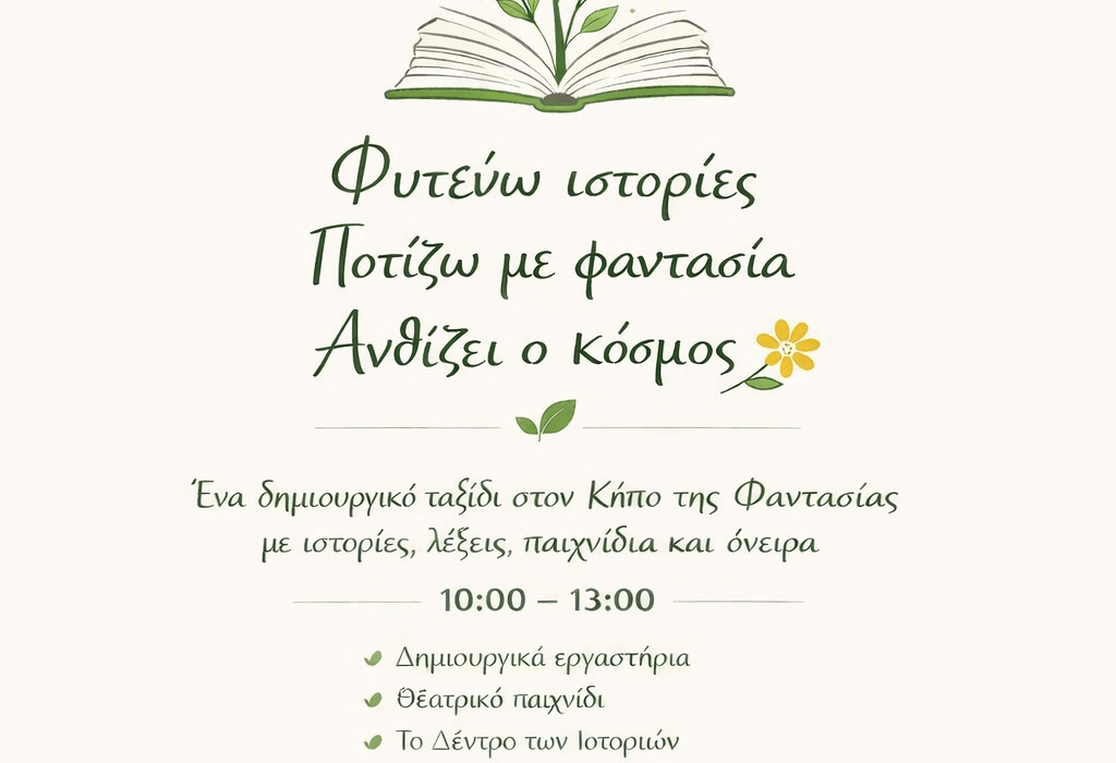 Στο τέλος της εκδήλωσης, κάθε παιδί θα πάρει μαζί του έναν συμβολικό «σπόρο ιστορίας», για να θυμάται πως η φαντασία μεγαλώνει όταν τη μοιραζόμαστε.