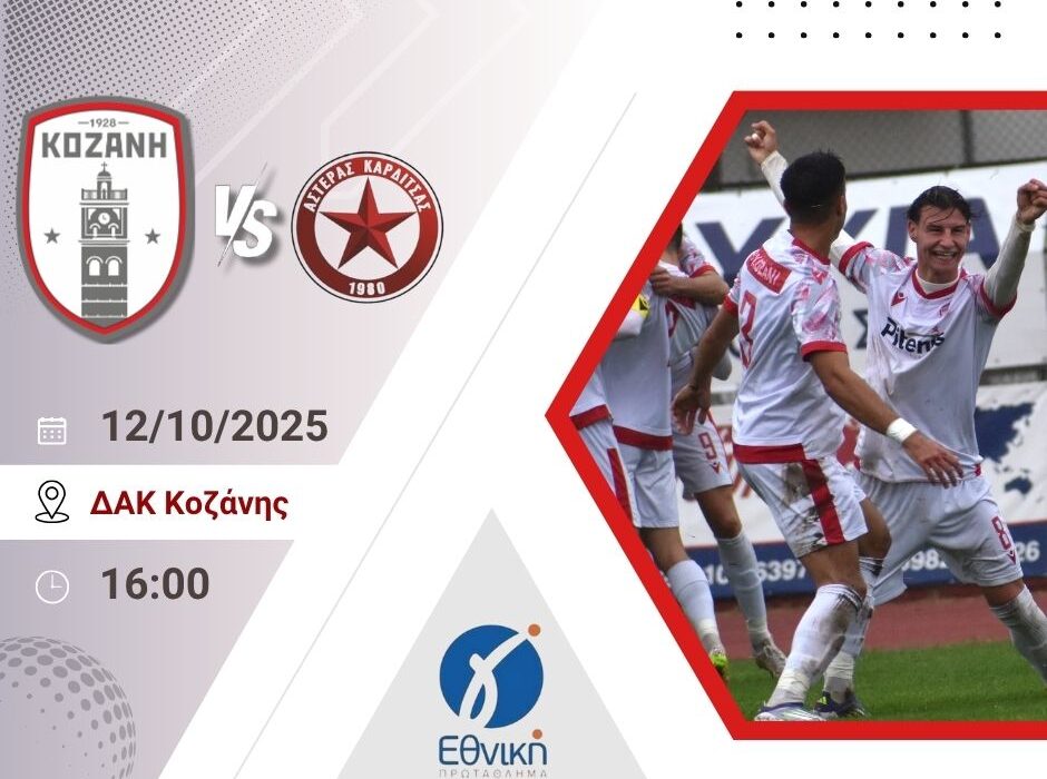 Το ΔΑΚ Κοζάνης ετοιμάζεται να ζήσει μια Κυριακή γεμάτη ένταση και συγκινήσεις! ΤΟ.Φ.Σ Κοζάνης υποδέχεται τον Αστέρα Καρδίτσας για τη 4η αγωνιστική της Γ’ Εθνικής (2ος Όμιλος) την Κυριακή, 12 Οκτωβρίου 2025, στις 4:00 μ.μ. Η ομάδα μας επιστρέφει στην έδρα της με στόχο την πρώτη της νίκη στο πρωτάθλημα, μετά τον πολύτιμο βαθμό που απέσπασε εκτός έδρας κόντρα στον Απόλλωνα Καλαμαριάς, σε ένα παιχνίδι όπου θα μπορούσε να είχε φύγει νικήτρια. Οι ποδοσφαιριστές έδειξαν χαρακτήρα, πάθος και αγωνιστική αυτοθυσία – στοιχεία που θα κρίνουν και την επικείμενη αναμέτρηση. Ο Αστέρας Καρδίτσας αναμένεται να φέρει δυνατή αντίσταση, ωστόσο η Κοζάνη ετοιμάζεται να παρουσιάσει έναν αγώνα γεμάτο ένταση, ταχύτητα και δυνατές φάσεις, με στόχο να χαρίσει στους φιλάθλους της τη νίκη και το πρώτο χαμόγελο της σεζόν. Το ΦΣ Κοζάνη ευχαριστεί τους φιλάθλους για τη συνεχή στήριξη τους και τους καλεί όλους να δώσουν δυναμικό παρών στο γήπεδο και να γίνουν ο 12ος παίκτης της ομάδας. Η υποστήριξή τους θα είναι καθοριστική σε ένα παιχνίδι που υπόσχεται πάθος, συγκινήσεις και σπουδαίες στιγμές . Υ.Γ Η είσοδος των φιλάθλων θα γίνει από την επάνω πλευρά του γηπέδου (κυλικείο)