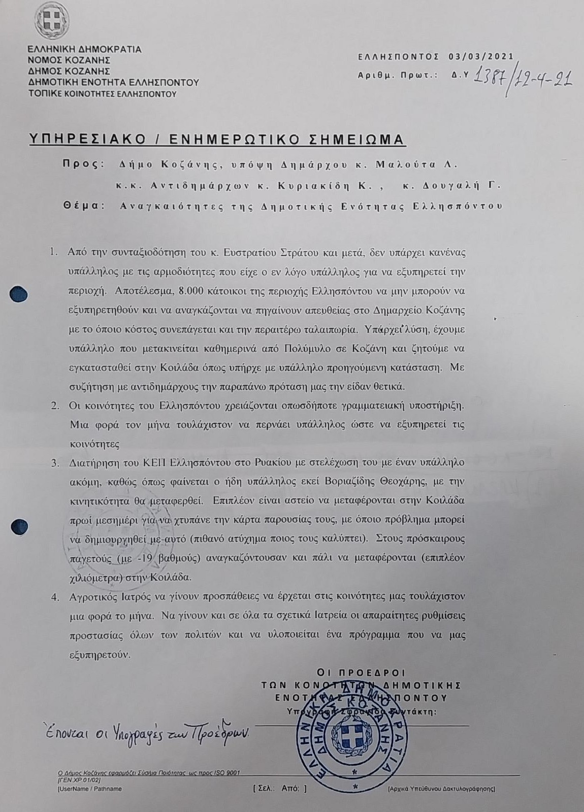 «Μαζί για την Κοζάνη»: Τα κροκοδείλια δάκρυα του κ. Μαλούτα για το Ληξιαρχείο της Αιανής – Το 2021 αγνόησε τους Προέδρους του Ελλησπόντου αφήνοντας επί της ουσίας να κλείσει το Ληξιαρχείο της περιοχής