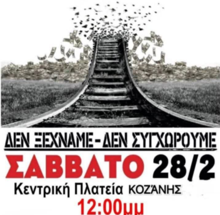 Συγκέντρωση στην Κ. Πλατεία της Κοζάνης Σάββατο 28/2 ώρα 12.00