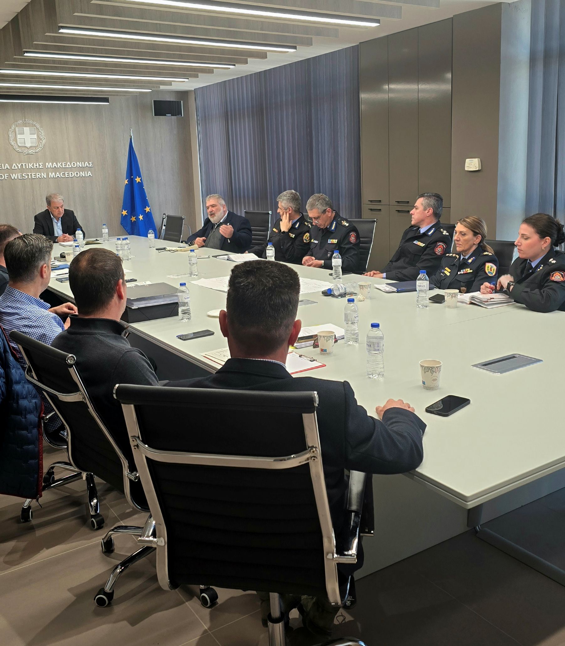 Η εξέλιξη των εργασιών για τις υποδομές εγκατάστασης εξομοιωτή πυρκαγιάς σε αεροσκάφος στις εγκαταστάσεις της Σχολής Πυροσβεστών Πτολεμαΐδας συζητήθηκε στην συνάντηση του Περιφερειάρχη Δυτικής Μακεδονίας Γιώργου Αμανατίδη και του Δημάρχου  Εορδαίας Παναγιώτη Πλακεντά με τον Επιτελάρχη του Πυροσβεστικού Σώματος, Αντιστράτηγο Αθανάσιο Μπαλάφα, τον Κλαδάρχη Διοικητικής Υποστήριξης, Υποστράτηγο Αστέριο Τσιούρβα, τον Διοικητή Πυροσβεστικών Ακαδημιών, Υποστράτηγο Παναγιώτη Κυπριωτέλλη και τη Διοικήτρια της Σχολής, Πύραρχο Αρχοντία Σερέτη.