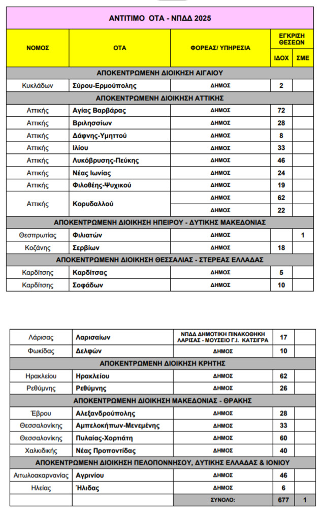 Με απόφαση της Υφυπουργού Εσωτερικών, κας Παρασκευής Χαραλαμπογιάννη, εγκρίθηκε η πρόσληψη 677 ατόμων με συμβάσεις ορισμένου χρόνου, καθώς και μίας (1) σύμβασης μίσθωσης έργου, για την κάλυψη αναγκών σε δήμους όλης της χώρας.