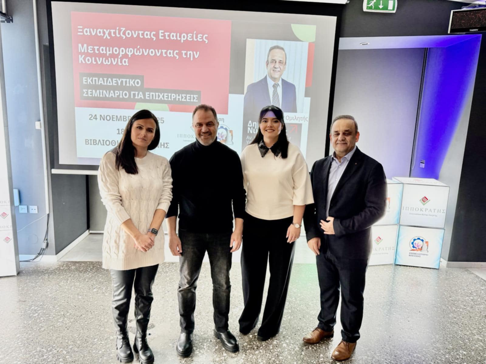 Με επιτυχία πραγματοποιήθηκε στο Αμφιθέατρο της Δημοτικής Βιβλιοθήκης Κοζάνης το εκπαιδευτικό σεμινάριο με τίτλο «Ξαναχτίζοντας εταιρείες μεταμορφώνοντας την κοινωνία», το οποίο συνδιοργάνωσαν το Διαγνωστικό Κέντρο Ιπποκράτης, το Επιμελητήριο Κοζάνης και ο Μηχανισμός Στήριξης Επιχειρήσεων. Η εκδήλωση είχε ως στόχο την ενίσχυση στελεχών και επαγγελματιών της περιοχής με σύγχρονα εργαλεία διοίκησης και οργανωτικής κουλτούρας, σε μια περίοδο όπου η τοπική οικονομία καλείται να προσαρμοστεί στις απαιτήσεις της μεταλιγνιτικής εποχής.