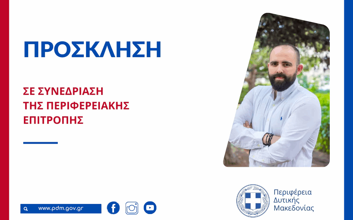 Συνεδρίαση την Δευτέρα 20/04/2026 και  ώρα 10:30 (δια ζώσης και με τηλεδιάσκεψη) στο κτίριο της Περιφερειακής Ενότητας Κοζάνης (2ος όροφος, γραφείο Περιφερειακής Επιτροπής), για λήψη αποφάσεων επί των κάτωθι θεμάτων: