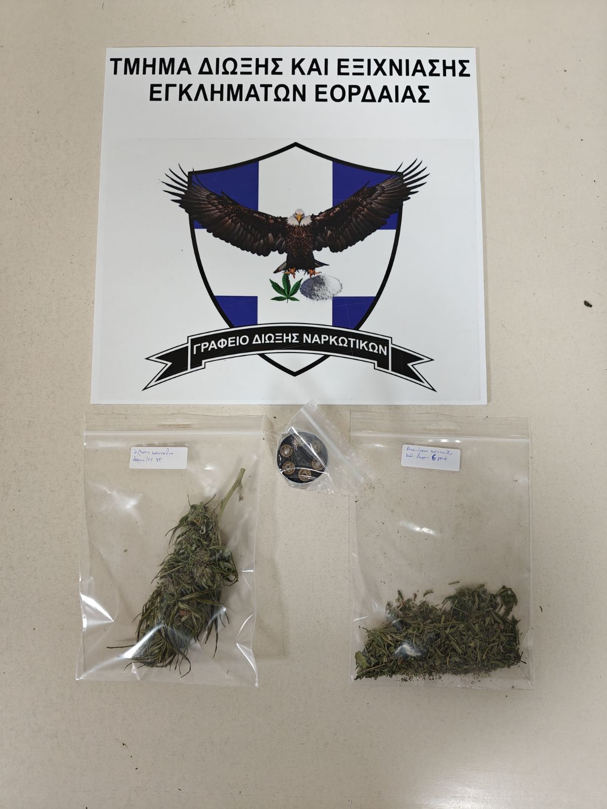 Κατασχέθηκαν -10- δενδρύλλια κάνναβης, κλώνος δενδρυλλίου κάνναβης, καθαρού βάρους -14- γραμμαρίων, ποσότητα ακατέργαστης κάνναβης, καθαρού βάρους -6- γραμμαρίων