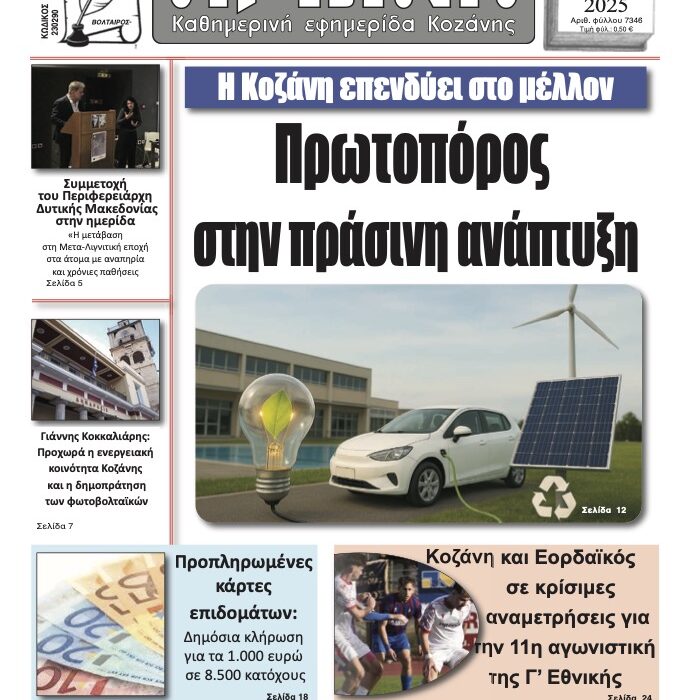 Σχολιασμός Πρωτοσέλιδου – “Πρωινή” Κοζάνης | 28 Νοεμβρίου 2025