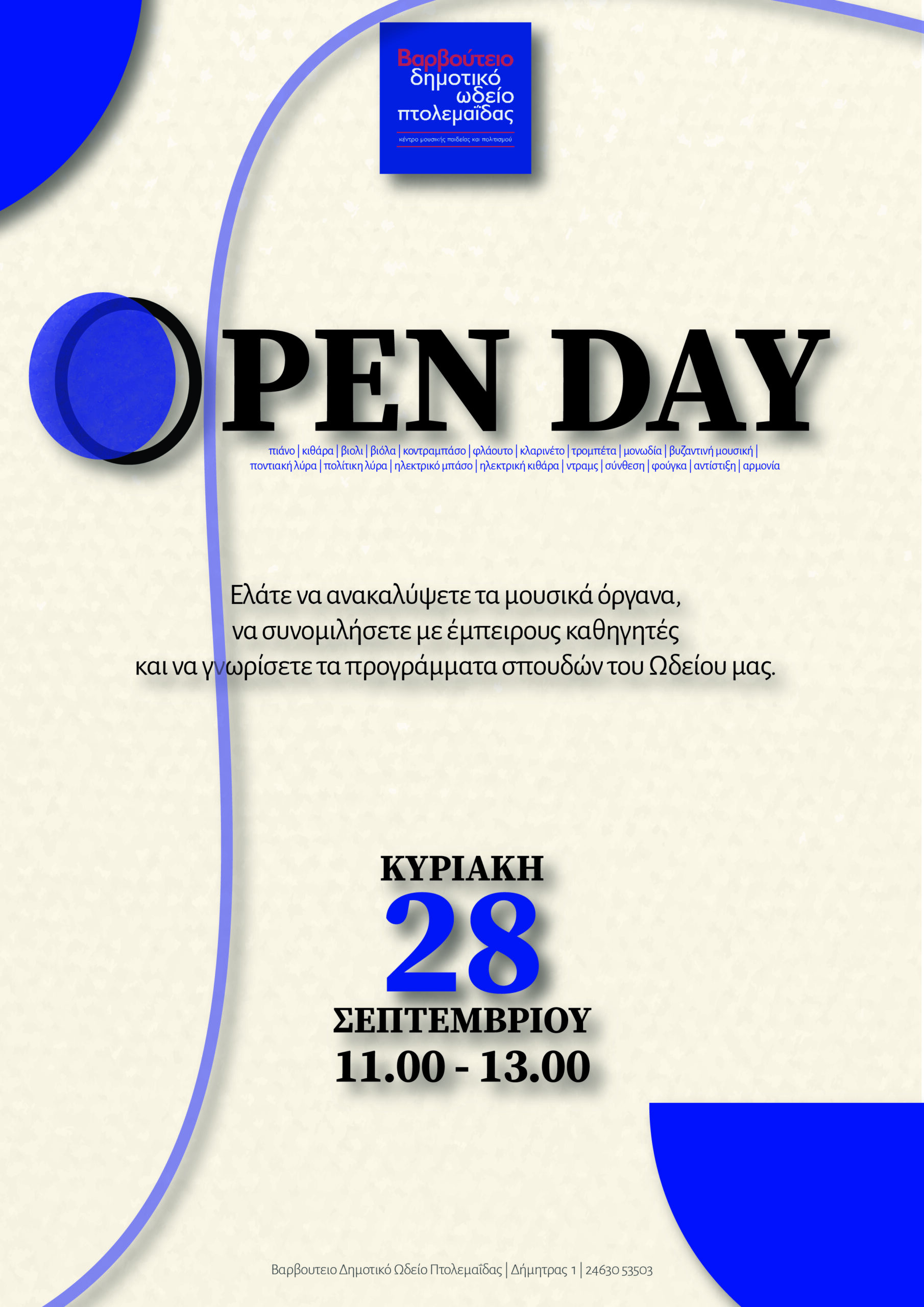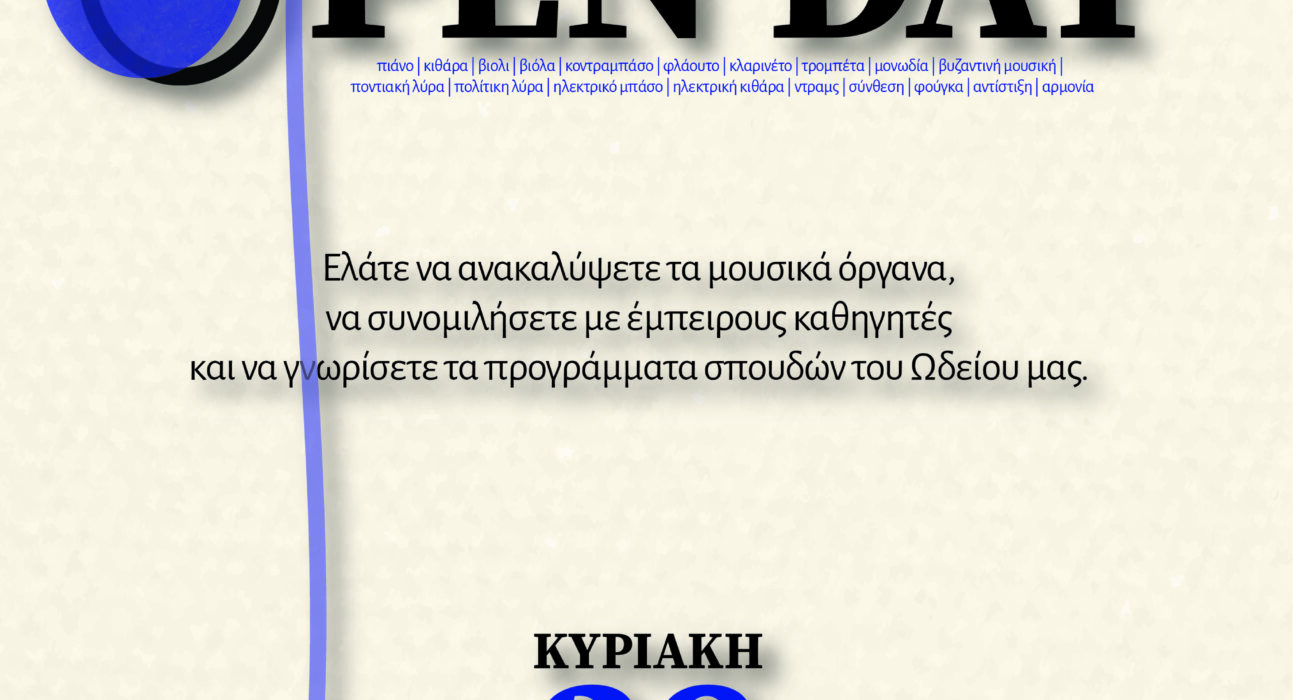 Περπατήστε στους χώρους του Ωδείου, αφήστε τα όργανα να σας μιλήσουν, ακούστε τους ήχους τους και –γιατί όχι– δοκιμάστε να παίξετε εσείς οι ίδιοι. Οι καθηγητές μας θα είναι εκεί, για να μοιραστούν γνώση, έμπνευση και αγάπη για τη μουσική.