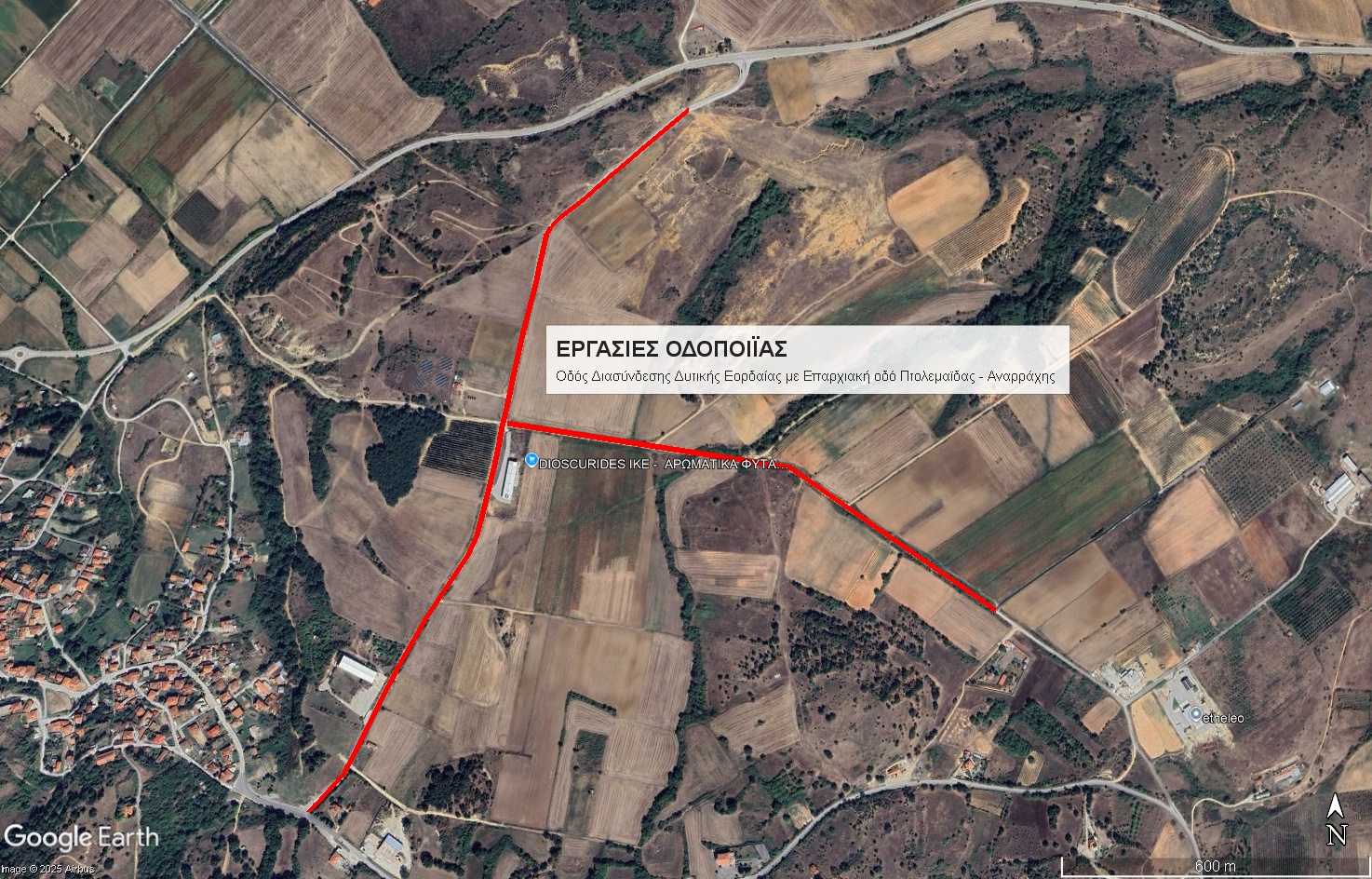 Το έργο αφορά σε εργασίες συντήρησης της οδού διασύνδεσης της Επαρχιακής Οδού Δυτικής Εορδαίας με τη Δευτερεύουσα Επαρχιακή Οδό Πτολεμαΐδας – Αναρράχης, μήκους περίπου 1380μ. καθώς και σε εργασίες συντήρησης της διακλάδωσης αυτής μήκους 930μ.
