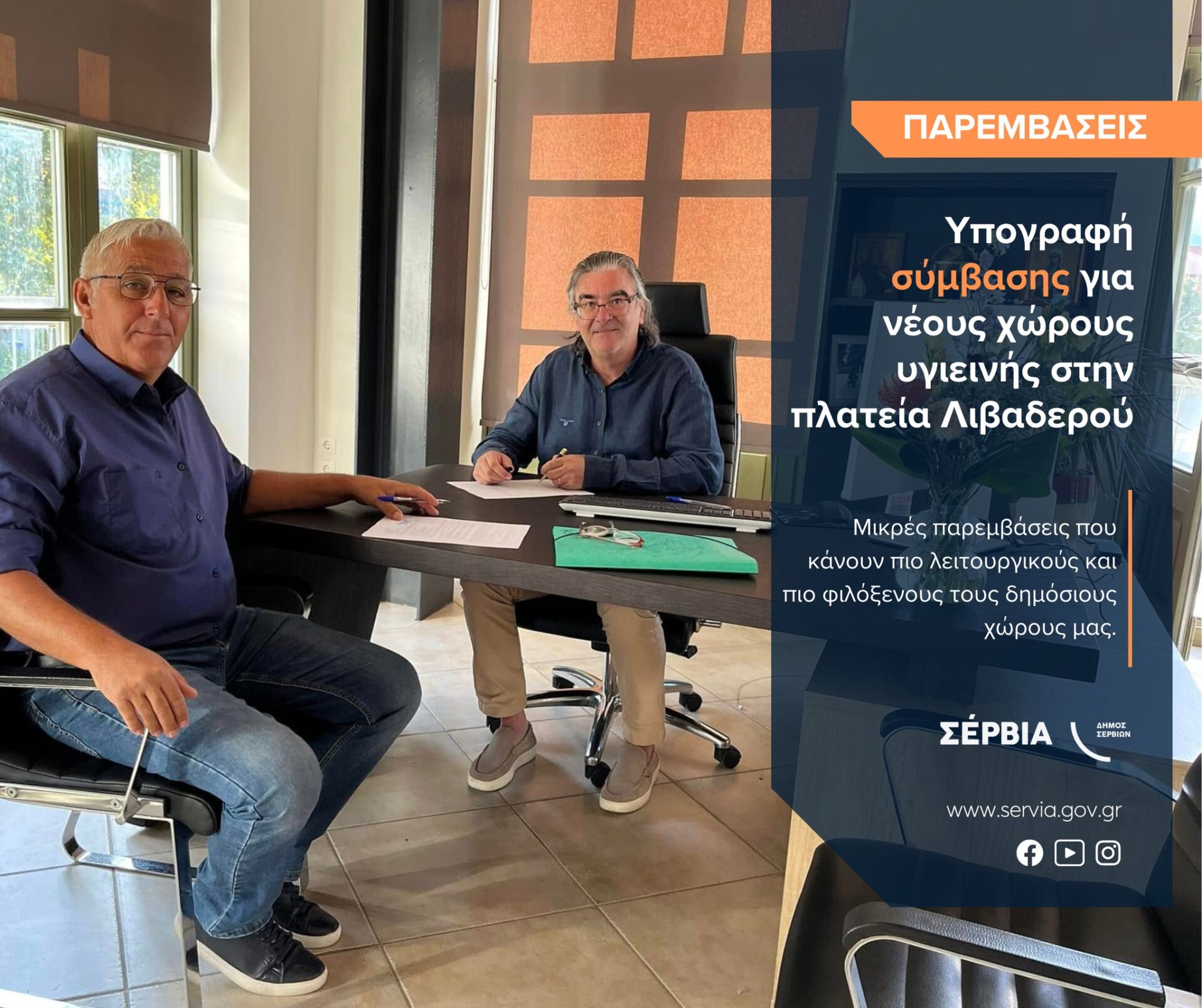 Ο Δήμαρχος Σερβίων Χρήστος Ελευθερίου υπέγραψε τη σύμβαση για νέους χώρους υγιεινής στην πλατεία Λιβαδερού.