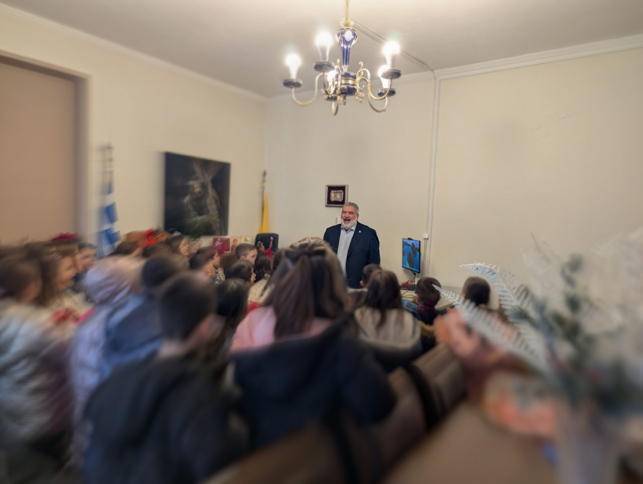 Ο Δήμαρχος ευχαρίστησε θερμά τους μαθητές και τους εκπαιδευτικούς τους για την επίσκεψη τους και την όμορφη παρουσία τους, ανταλλάσσοντας με όλους χριστουγεννιάτικες ευχές και κεράσματα.