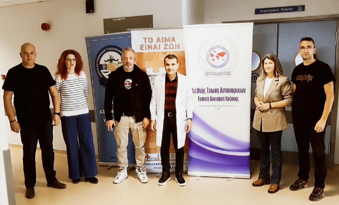 Με ιδιαίτερη επιτυχία πραγματοποιήθηκε χθες, Δευτέρα 3 Νοεμβρίου 2025, στο Μποδοσάκειο Νοσοκομείο Πτολεμαΐδας, από την Ένωση Αστυνομικών Υπαλλήλων Κοζάνης σε συνεργασία με την Τοπική Διοίκηση Κοζάνης της Διεθνούς Ένωσης Αστυνομικών (ΙΡΑ), εθελοντική αιμοδοσία, με μέριμνα του προσωπικού του Τμήματος Αιμοδοσίας.
