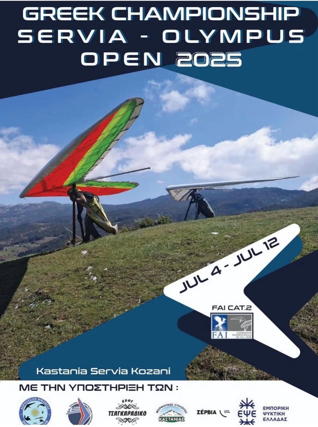Ο Δήμος Σερβίων και η Ελληνική Αεραθλητική Ομοσπονδία υποδέχονται φέτος το Greek Championship Servia – Olympus Open 2025, που θα πραγματοποιηθεί από τις 4 έως τις 12 Ιουλίου στην Καστανιά Σερβίων, μια περιοχή γνωστή για τις φυσικές ομορφιές της και τις ιδανικές συνθήκες για αλεξίπτωτο πλαγιάς.