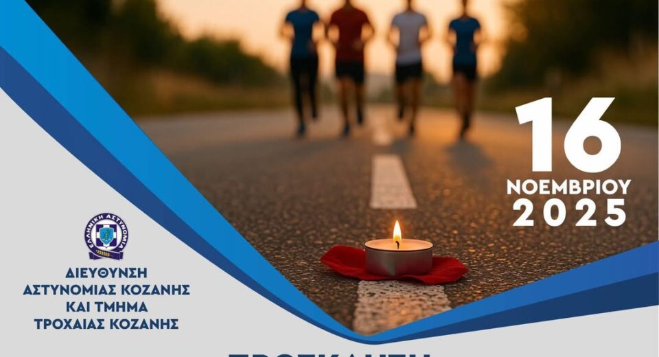 Ο Σύλλογος Δρομέων Υγείας Κοζάνης διοργανώνει την Κυριακή 16 Νοεμβρίου 2025, με αφορμή την Ημέρα Μνήμης Θυμάτων Τροχαίων Ατυχημάτων, έναν Αγώνα Μνήμης με αφετηρία και τερματισμό τη Στέγη Ποντιακού Πολιτισμού. Η εκκίνηση θα δοθεί στις 11:00 π.μ. Μετά τον αγώνα θα ακολουθήσει εκδήλωση με ομιλίες από εξαιρετικούς εισηγητές, μεταξύ των οποίων οι οδηγοί αγώνων Nikos […]