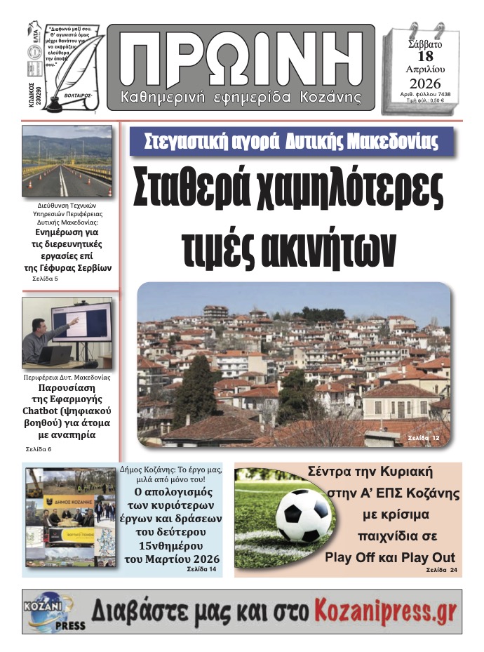 Η Δ.Ε.Υ.Α. Κοζάνης ενημερώνει τους καταναλωτές τηλεθέρμανσης που διαμένουν ή δραστηριοποιούνται στις οδούς Λαζαράδων, Πανόρμου (σε τμήμα της), 11ης Οκτωβρίου (σε τμήμα της), Κρήτης, Ν. Γκοβεδάρου, Μ. Καληνδέρη, Καλυψούς και Νεάρχου, ότι λόγω της διαρροής που προέκυψε επί της οδού Καλυψούς, σήμερα, Παρασκευή 27 Μαρτίου 2026, διακόπηκε προσωρινά η παροχή θερμικής ενέργειας προκειμένου να γίνουν […]