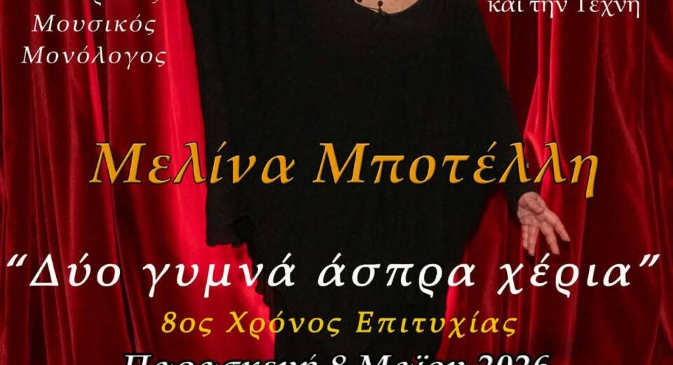 ΘΕΑΤΡΙΚΟΣ-ΜΟΥΣΙΚΟΣ ΜΟΝΟΛΟΓΟΣ ‘’ΔΥΟ ΓΥΜΝΑ ΑΣΠΡΑ ΧΕΡΙΑ’’ Ο Δήμος Εορδαίας διοργανώνει την ΠΑΡΑΣΚΕΥΗ 8 ΜΑΪΟΥ 2026 και ώρα 9μμ, στο ΠΝΕΥΜΑΤΙΚΟ ΚΕΝΤΡΟ ΤΟΥ ΔΗΜΟΥ ΕΟΡΔΑΙΑΣ στην ΠΤΟΛΕΜΑΪΔΑ, την παρουσίαση του θεατρικού – μουσικού μονολόγου «Δύο γυμνά άσπρα χέρια» σε συγγραφή, σκηνοθεσία και ερμηνεία Μελίνας Μποτέλλη. Η παράσταση θα δοθεί με την ευκαιρία της Παγκόσμιας ημέρας της […]