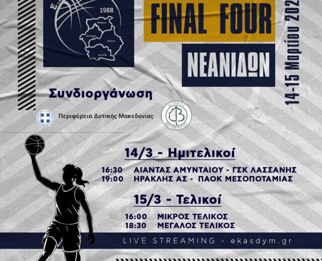 Το Final Four Νεανίδων της ΕΚΑΣΔΥΜ που θα πραγματοποιηθεί στις 14 και 15 Μαρτίου στο ΔΑΚ Βελβεντού, δεν αποτελεί απλώς την ολοκλήρωση ενός πρωταθλήματος. Είναι πάνω απ’ όλα μια γιορτή του αναπτυξιακού μπάσκετ και μια ευκαιρία να αναδειχθεί η προσπάθεια των νεαρών αθλητριών της Δυτικής Μακεδονίας. Σε αυτή την ηλικία το αποτέλεσμα έχει μικρότερη σημασία […]