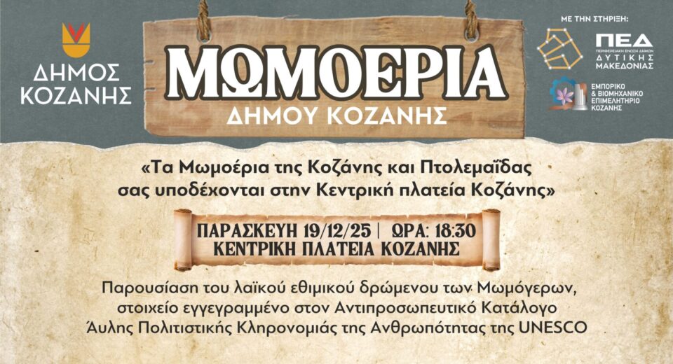 Οι Μωμόγεροι αποτελούν για τον τόπο μας ένα ξεχωριστό ευετηριακό και ψυχαγωγικό λαϊκό δρώμενο του Δωδεκαημέρου, το οποίο προέρχεται από την ορεινή Τραπεζούντα, περιλαμβάνοντας χορευτική, θεατρική και μουσική ομάδα σε παράλληλη δράση, που αναβιώνει σε οκτώ χωριά του Νομού Κοζάνης. Οι οκτώ σύλλογοι του εθιμικού δρωμένου από Κοζάνη και Εορδαία, που είναι εγγεγραμμένοι στον αντιπροσωπευτικό […]