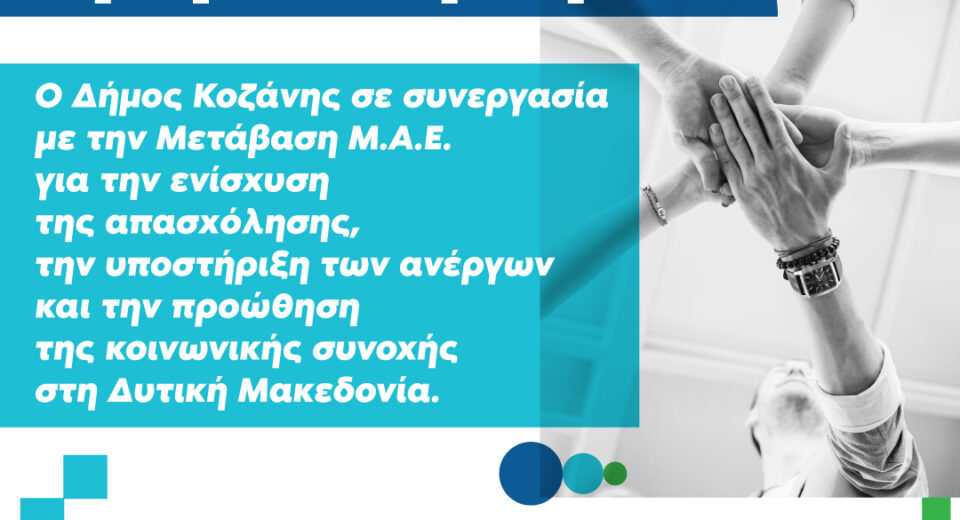 Ο Δήμος Κοζάνης, η Μετάβαση Μ.Α.Ε. και το Επιμελητήριο Κοζάνης, σε συνεργασία με το Πανεπιστήμιο Δυτικής Μακεδονίας, διοργανώνουν την Ημέρα Καριέρας & Δικτύωσης με την τοπική αγορά εργασίας, την Τετάρτη 26 Νοεμβρίου 2025, από τις 11:00 έως τις 19:00, στο Εκθεσιακό Κέντρο Δυτικής Μακεδονίας στα Κοίλα Κοζάνης. Η εκδήλωση πραγματοποιείται στο πλαίσιο της κοινής προσπάθειας […]
