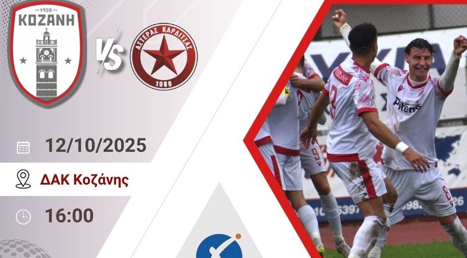 Το ΔΑΚ Κοζάνης ετοιμάζεται να ζήσει μια Κυριακή γεμάτη ένταση και συγκινήσεις! ΤΟ.Φ.Σ Κοζάνης υποδέχεται τον Αστέρα Καρδίτσας για τη 4η αγωνιστική της Γ’ Εθνικής (2ος Όμιλος) την Κυριακή, 12 Οκτωβρίου 2025, στις 4:00 μ.μ. Η ομάδα μας επιστρέφει στην έδρα της με στόχο την πρώτη της νίκη στο πρωτάθλημα, μετά τον πολύτιμο βαθμό που […]