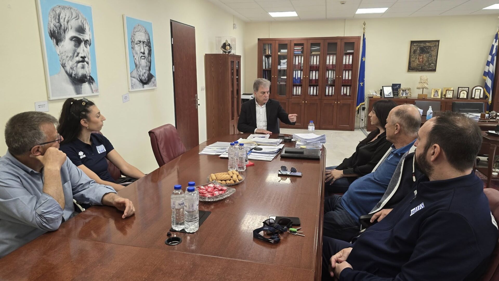 Τον Περιφερειάρχη Δυτικής Μακεδονίας Γιώργου Αμανατίδη επισκέφθηκαν η αρχηγός της γυναικείας Εθνικής ομάδας βόλεϊ Όλγα Στράντζαλη, ο προπονητής Απόστολος Οικονόμου, μέλη του τεχνικού επιτελείου και της Ελληνικής Ομοσπονδίας Πετοσφαίρισης, μαζί με την Αντιπεριφερειάρχη Παιδείας & Αθλητισμού Όλγα Πουταχίδου, μία ημέρα πριν την έναρξη των σημαντικών αγώνων στο Κλειστό Γυμναστήριο Λευκόβρυσης «Βασίλης Φλέγκας» στην Κοζάνη!